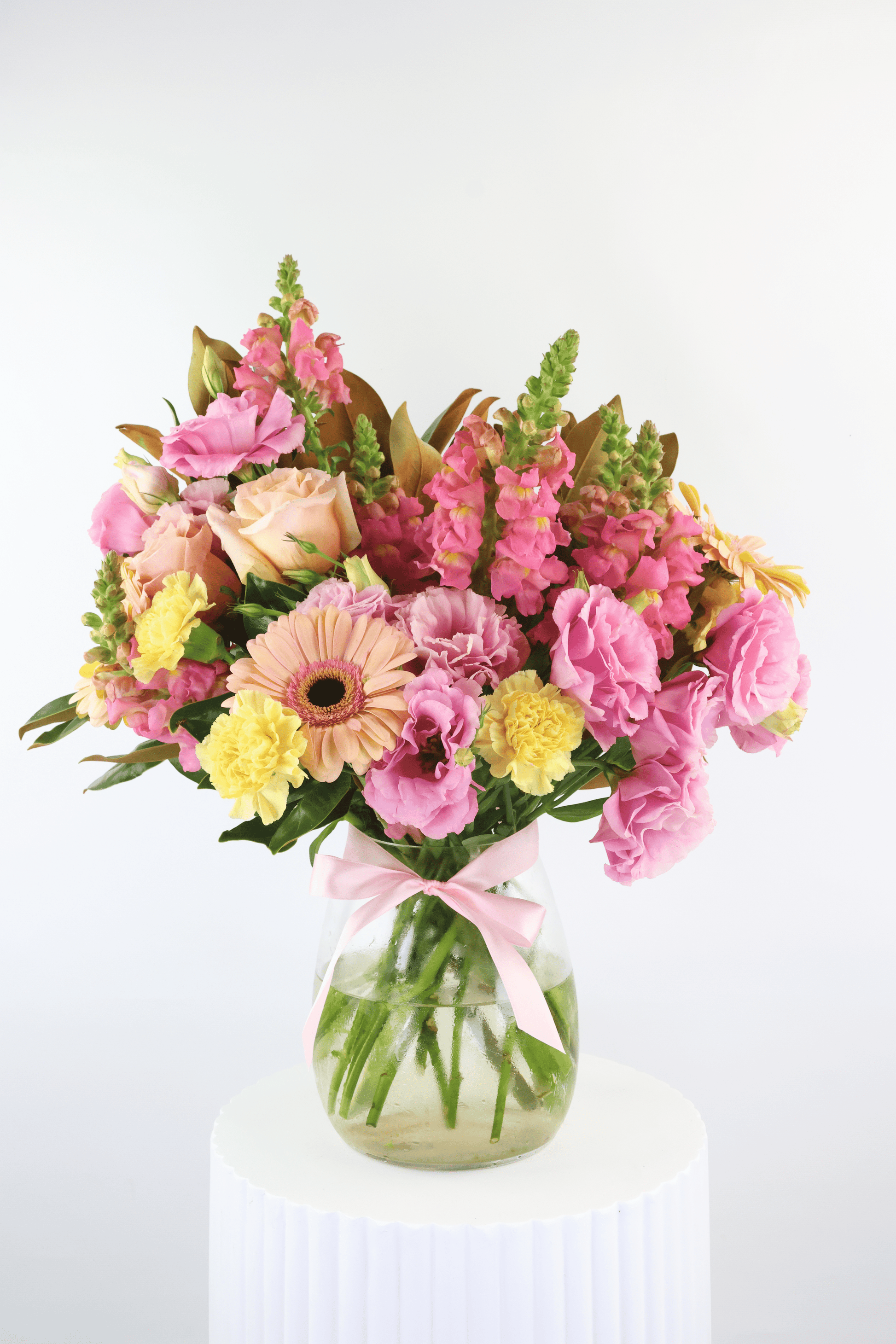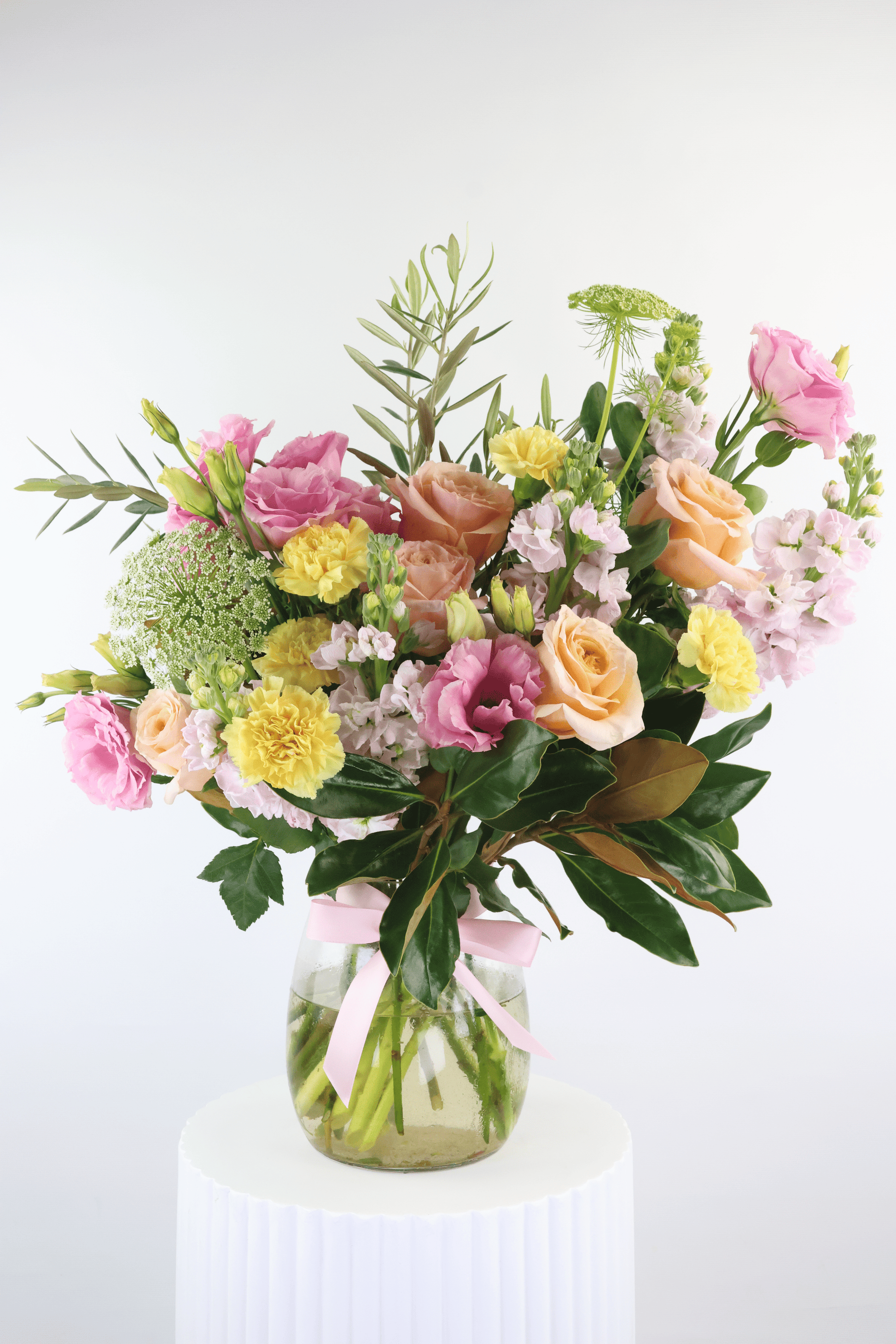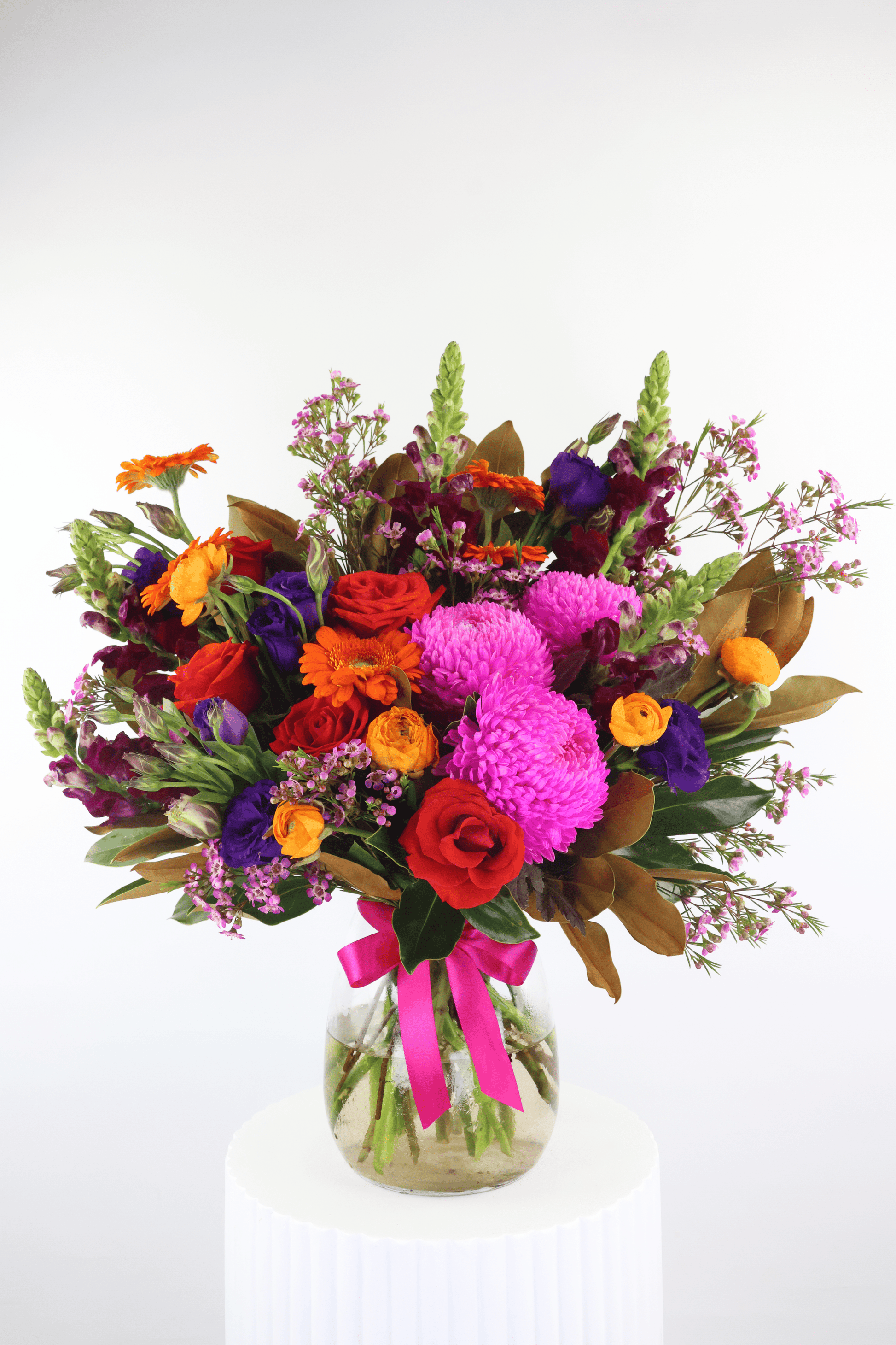 A luxurious creation of seasonal blooms and foliage carefully curated into a deluxe glass vase. Perfect for any special occasion, or if you’re simply looking to spoil someone special.